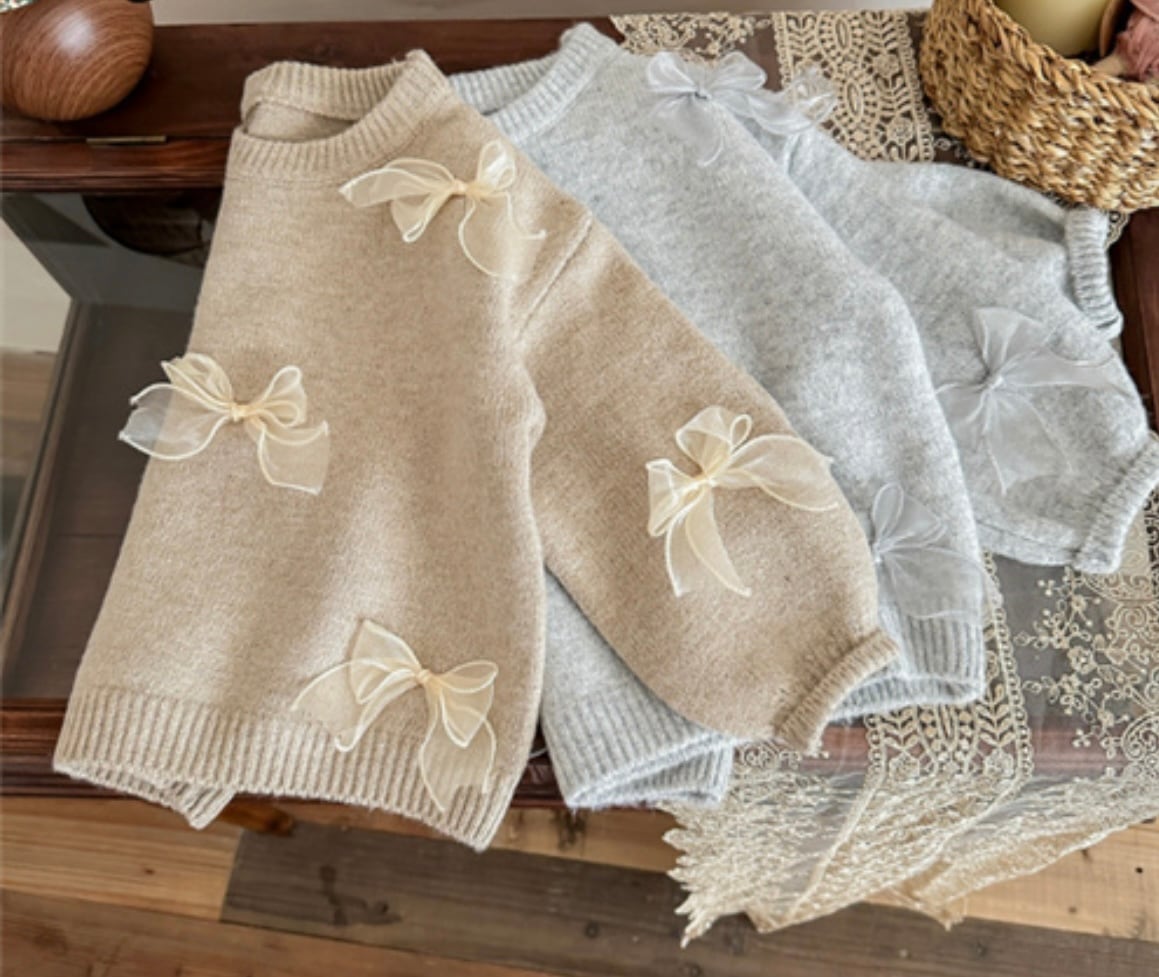 キュートな蝶々リボン付き春ニット